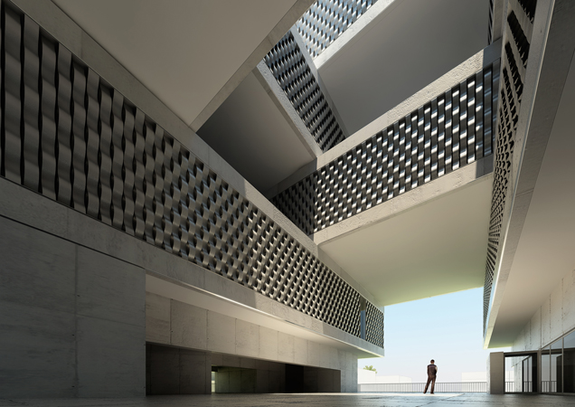 Es a partir de aquí, y de ese espacio central, desde el que la composición se establece. Está en su mayoría cubierto y es visualmente permeable en su relación con el exterior.