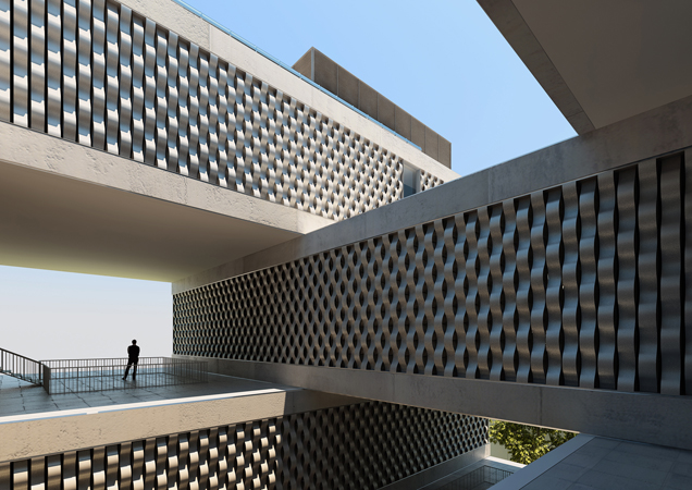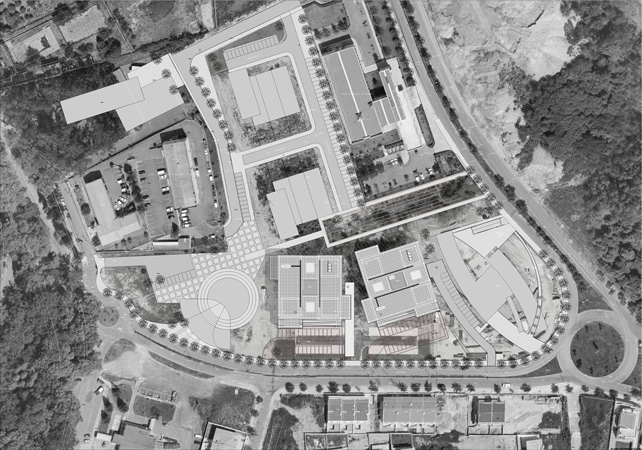 Se trata tan sólo de armar la neutralidad que debe señalar la presencia de los edificios de modo a evitar que asuman cualquier tipo de protagonismo, ya que tal cosa sería inadecuada respecto al lugar que ocupan en el conjunto.
